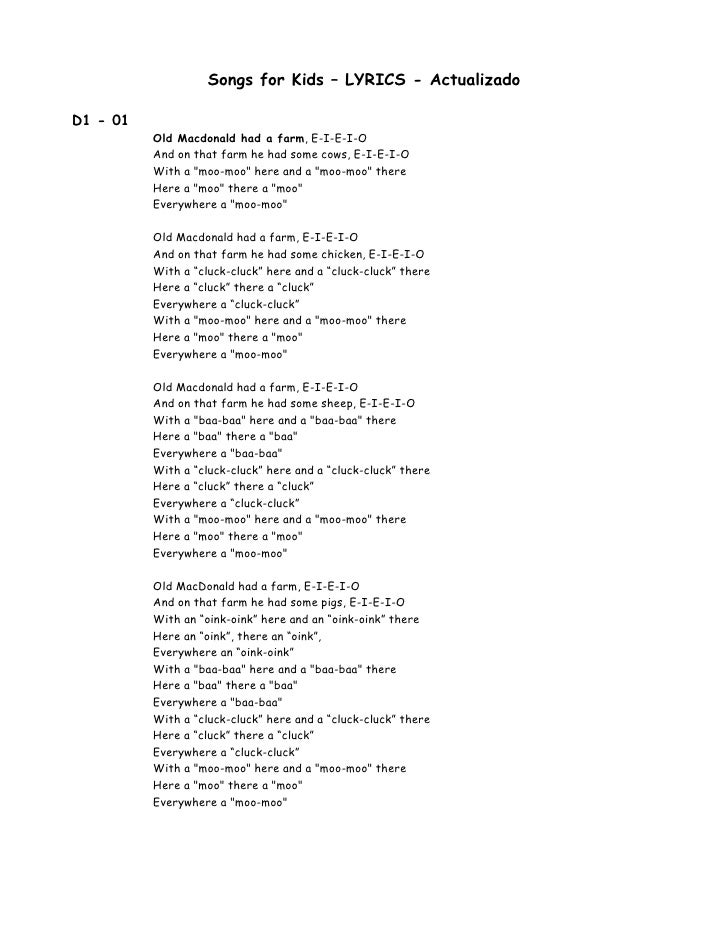 Browse 36 lyrics and 302 songs for children albums. Ring around the rosie lyrics. Children's songs lyrics, children's songs printouts, children's songs videos, children's songs midis. Jingle bells, today is monday, old macdonald had a farm, if you're happy and you know it, twinkle twinkle little star. Living in the days where positive children songs are hard to find, it feels great to hear this short yet encouraging song. If you confuse lyrics or song meanings, go ahead and create your own special renditions just for your family. We've found 56,743 lyrics, 49 artists, and 48 albums matching child. • 16 млн просмотров 3 года назад. But there's always a happy tommorow. Guitar chords and lyrics for many classic children's songs. Type out all lyrics, even if it's a chorus that's repeated throughout the song. Sing out loud childrens songs lyrics: Jesus loves the little children all the children of the world;